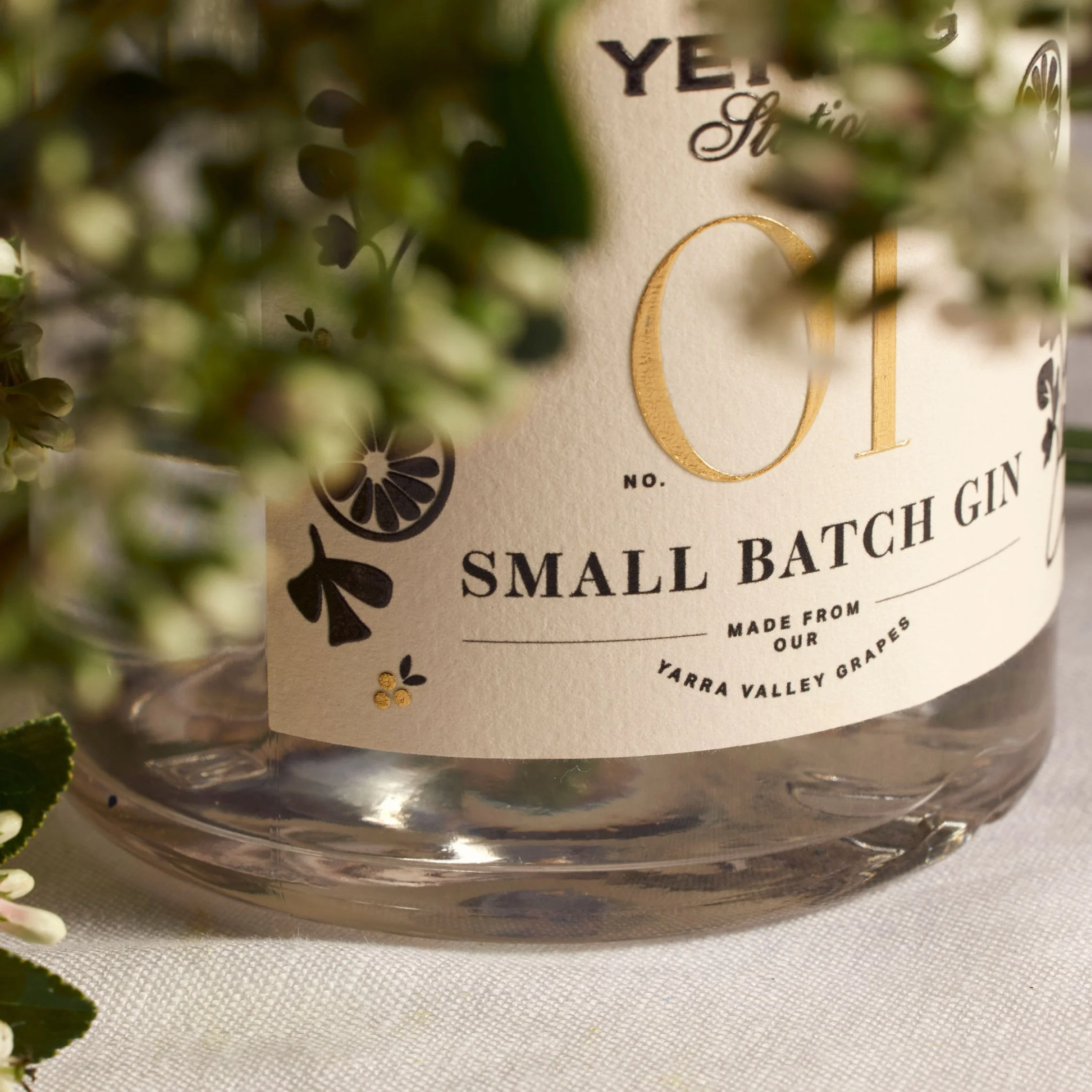The label was designed with the tasting elements front of mind. Illustrating the top notes in the gin, mixing in with the legacy of the Yering Station brand, bringing together a beautiful wrap label. It was elevated with gold foiling and